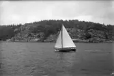 'Kristinebergs Zoologiska station. :: :: Båt i rörelse framför Kristinebergs Zoologiska station, fotograferad från Gullmarsfjorden. :: :: Ingår i serie med fotonr. 5103:1-24.'