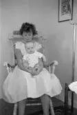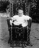 Valborg Lindberg, född Jonsson, som bodde i "Oppigårds" i Östansjö. Kortet är taget 1911. Valborg är 1 år gammal.