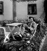 Man läser vid bord