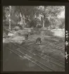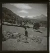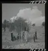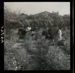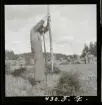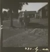 507 B Ultuna. Åkern skördas. En pojke har stannat till på vägen med sin cykel och tittar på.