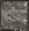 En man böjer sig ner över en stor kopparkittel. Strömsudden, Västra Kikkejaur.