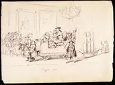 "Julafton 1853". Kungliga slottet. Tuschteckning av Fritz von Dardel.