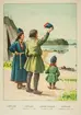 "LAPPLAND. Luleå". En kvinna, en man och ett barn utanför en kåta vid en strand. Mannen vinkar med mössan. L.A. 1081. Kolorerat tryck. Jämför NMA.0103136.