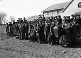 "Traktorer och skötare trimmas för vårbruket", Salsta, Lena, Uppland 1940