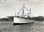 Dag Almén har stått på Västerbron i Stockholm och fångat fartyget när det passerat under på ingående mot Norr Mäklarstrand, den 12/7 1952.