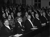 Firandet av Lantbrukshögskolans tioårsjubileum, Ultuna - i första raden rector magnificus Thore Engströmer, universitetskansler Östen Undén samt statsråden Axel Pehrsson-Bramstorp och Per Edvin Sköld