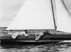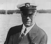 Fyra herrar från Göteborgs Kungliga Segel Sällskap: längst t v Fritz Schéel, i mitten oidentifierad person, näst längst t h Gunnar Carlsson samt i h kanten Birger Jonsson. Att bilden tagits 1935, som anteckningen på baksidan gör gällande, har inte kunnat bekräftas.