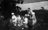 Sällskap på utflykt till skärgårdsö (?), sannolikt 1930-tal