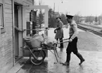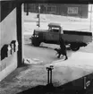 Luftpost från postkupé 62 ned, inlastas i busspostkupé på Malmö centralstation. Posten sorteras sedan i bussen, på väg ut till Bulltofta flygfält.