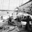 Göteborgs örlogsdepå. Danska slättoppskonaren Vega passerar utanför halländska kusten i närheten av Varberg. Fil. lic. Gunnar Jonssons undersökningsresa till västkusten juni 1940. 86.