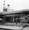 Fredrik Johanssons varv. Jakten Vega av Degerhamn, byggd i Bergkvara 1909. På slipen. Sedd förifrån och från stryrbord.