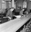 Snickeriarbetare Gideon Lundin med en modell av den fönsterkonstruktion han uppfunnit tillsammans med rörarbetare Anders Lind, sannolikt på Flustret