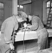 Svarvare Holm utanför sin verkstad, Östhammar, Uppland