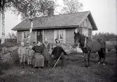 Soldatbostället nr 161, Skaga. Revs 1936. Fr.v: 1. Anton Emil 2. Johan Fredrik Emil 3. Anna Emil 4. Signe Emil 5. Gustav Emil 6. Christina Emil