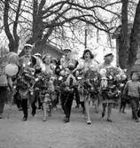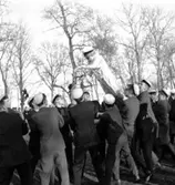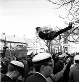 Skansen, vid Solliden med utsikt mot sydost. Nybakade studentskor i tågar upp till Solliden för gemensam fest för 2000 studenter.