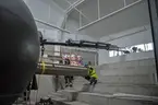 Ubåten Makrillen trimmad för att ladda torpeder i Haraldmagasinet i aktern, år 1967