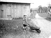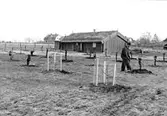 En TGOJ-anställd hemma på sin gård med handplogen. Trafikaktiebolaget Grängesberg-Oxelösund Järnvägar.