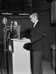 "Cyklotronen mäktigt vetenskapligt instrument", från invigningen av Gustaf Werners institut för kärnkemi, Kåbo, Uppsala december 1949. Professor The Svedberg talar