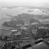 År 1957. Utsikt från höghuset på Tallgatan, Brynäs.