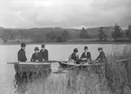 Diverse bilder från Fred Goldbergs samling. Motiv av flygbåt som landat i vatten vid Bergendal, 1928.