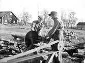 Eber Nilsson, Holmagården, Bolum. Vedklyvning på1940-talet.