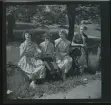 1717/A Rom. Ett sällskap med kvinnor och barn ligger och vilar i gräset framför ruiner.