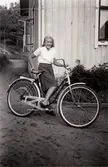 "Min cykel och jag". Berit Gustafsson med sin nya cykel år 1949. Platsen är Fridhem, Gastorp2 i Lindome. Cykeln finns fortfarande kvar (år 2018).