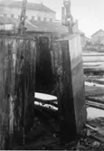 Fartyget liggande vid Hammarbyvarvet under nedskrotning. 14/1 1961