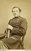 Okänd mans porträtt i oval form, fotograferad i Varberg. Han har skägg och mustasch, ljus väst och kavaj som har en mörk krage.