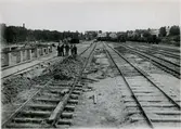 Värtan bangård inför elektrifieringen. Byte av slipers.