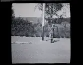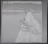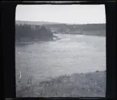 Vy över kyrkogård och vatten, fotograferat från kyrkans tak/ torn.