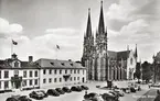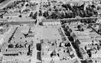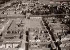 Flygfoto över Örebro, Nikolaikyrkan, Rådhuset, m.m.