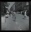 Skioptikonbild med motiv från gata i Stuttgart. Bilden har förvarats i kartong märkt: Resan 1907. Heilbronn 6. Stuttgart 1. Berlin 2.