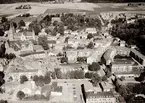 Utställningen var uppbyggd på Läroverkets skolgård. Huset i bakgrunden är Läroverket. Mannen på bilden är postiljon Johan Alfred Hellström. Född 1865 i Synnerby sn.