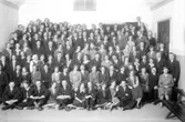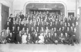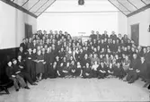FESTKOMMITTÉN I FREDSBERGS BLÅBANDFÖRENING SAMLAD UTANFÖR ETT HUS. 1884 bildades den första svenska blåbandsföreningen (nykterhetsrörelse).