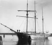 Ett reprofoto av ett fartygsporträtt som gestaltar det tremastade barkskeppet Atlantic från Gävle. På tavlan står det "Kapten O.G. Nilsson".