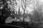 Kyrkan med omgivande kyrkogård sedd från sydöst.