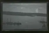 Badhytter, båtar, tandläkare Sandbergs hus. Gamla lilla lotsbåten vid bryggan närmast.