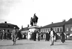 Enligt tidigare notering: "Invigningen av statyn på Kungstorget."