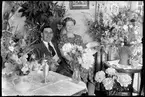 EN MAN SITTANDE BLAND BLOMMOR OCH SLÄKTEN