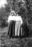 Systrarna Alm. Frida sitter på stolen och Karin står bakom