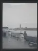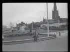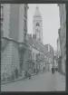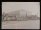 Människor sitter på trappen framför Universitetshuset i Uppsala.