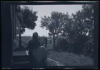 En kvinna sitter i trädgården utanför familjen Morthensens villa Solveden, Djursholm.