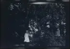 Kvinna (möjligen Elin Mothensen, född Anrep) i trädgården till familjen Morthensens villa Solveden, Djursholm.