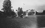 "Borgmästargården". I ljus kostym borgmästare Johan Wahlund och stående på trappan hans husföreståndarrinna Maria Lindberg, Östhammar, Uppland 1900