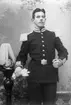 Tryckt med svart text på fotografiets framsida: "MARIA LUNDBÄCK UDDEVALLA" Handskriven text på baksidan: "Tre folkskolelärare, Carlén, Brusewitz, Sernqvist. Vikarierande för morfar i Resteröd."