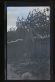 En pojke står på en sten vid ett staket. "Elov Ericson, Berga, Julita gård foto 1923. "
