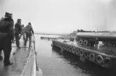 Sjukvårdsövning; skadade besättningsmän på fartyg tas om hand.