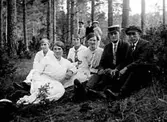 UNGDOMAR SITTANDE I EN SKOGSBACKE.