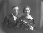 Uppgift enligt fotografen: "Uddevalla. Gruppfoto bröllop. Hans Karlsson, Hemmiljö."